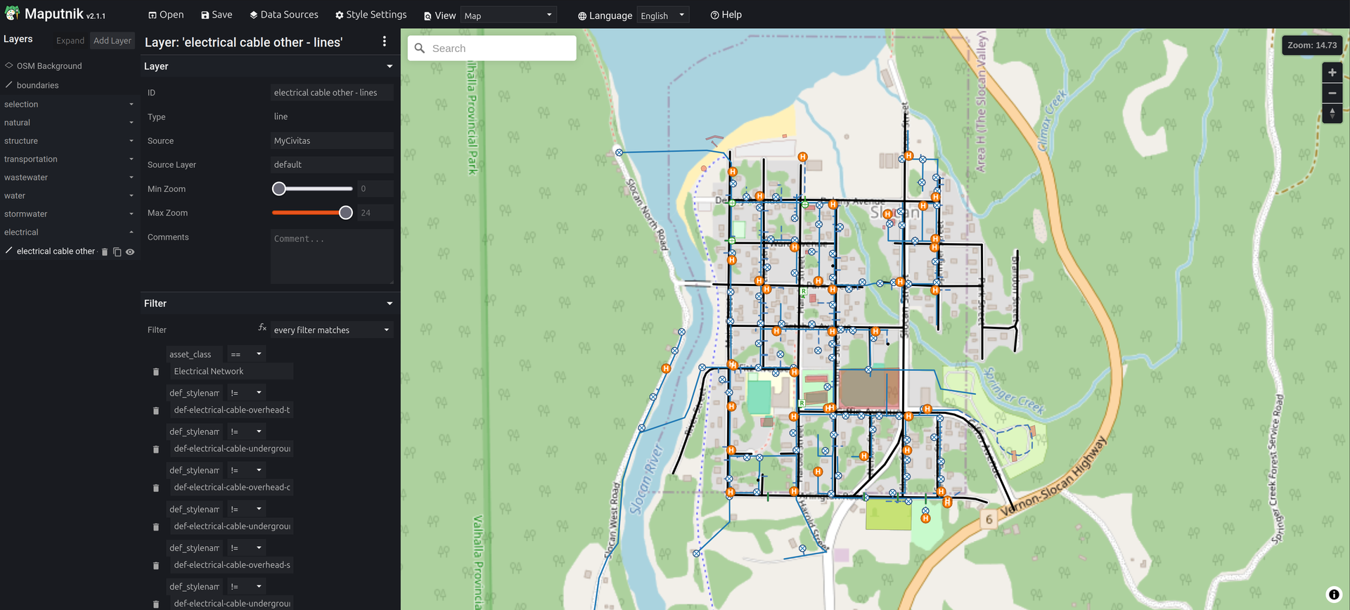 Fig.2 - Maputnik Mapbox Tile Styler. We use Maputnik and MapBox Vector Tile format to provide a responsive and flexible web mapping experience.