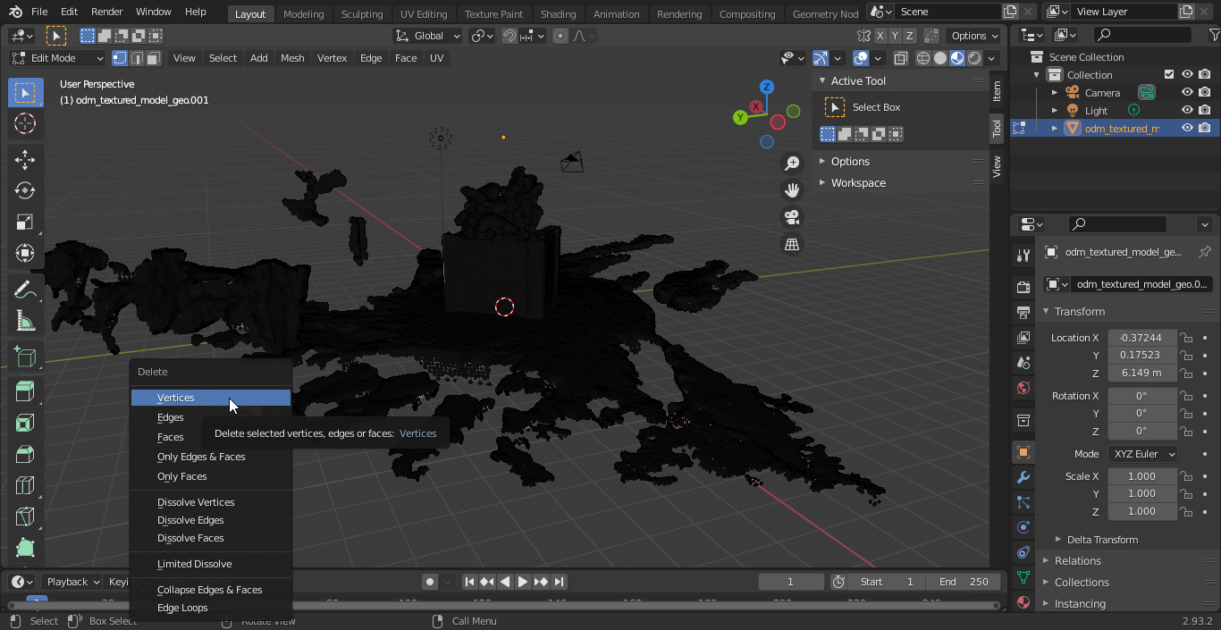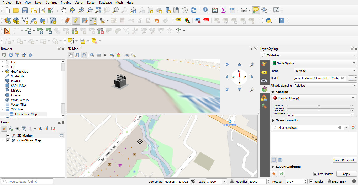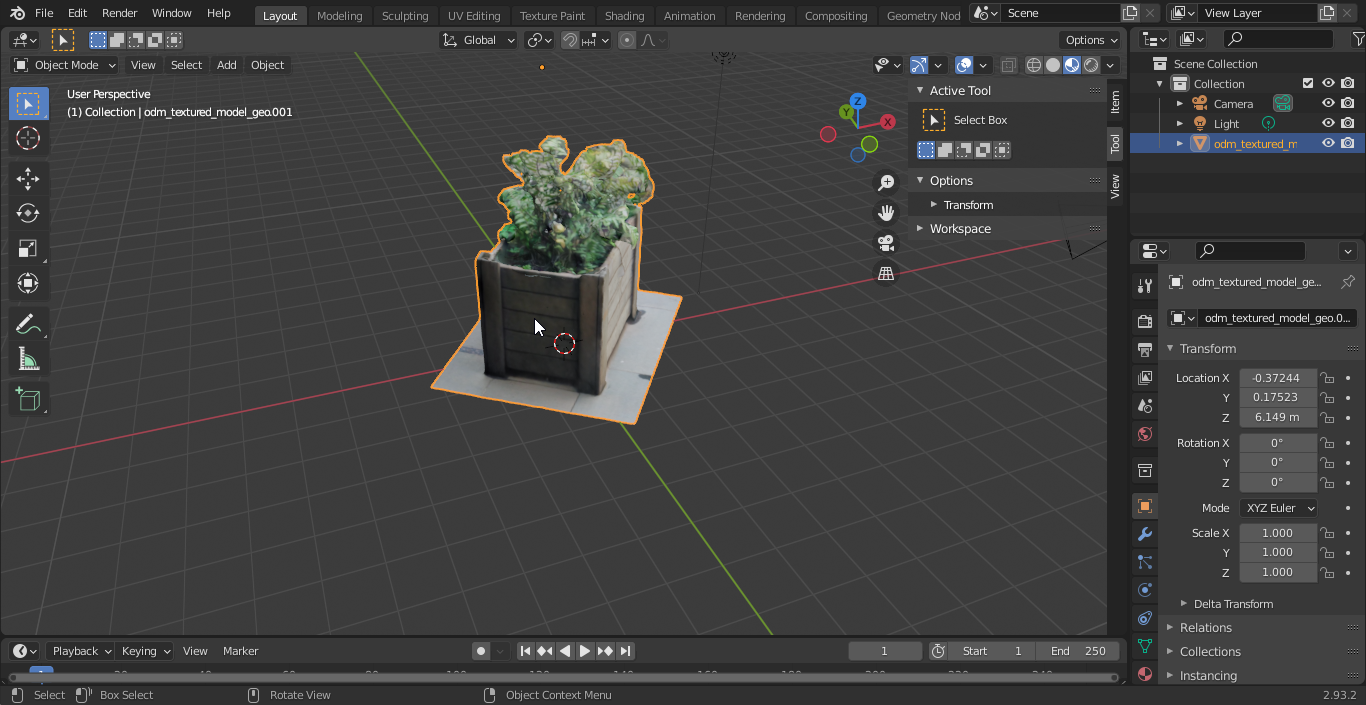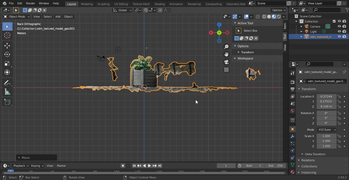 This post is a walkthrough showing you how to create a 3D model using ODM and Blender from the video frames of a video shot on your cellphone and use the 3D model as a symbol in QGIS. Blender is a free and open-source 3D creation suite. Open Drone Map (ODM) is drone mapping software that can be used to generate 3D models from aerial images (or in this case, generate 3D reconstructions from cell phone video). This post is adapted from Creating 3D Models for QGIS With ODM by Tim Sutton, which describes how to achieve the same results on Linux.