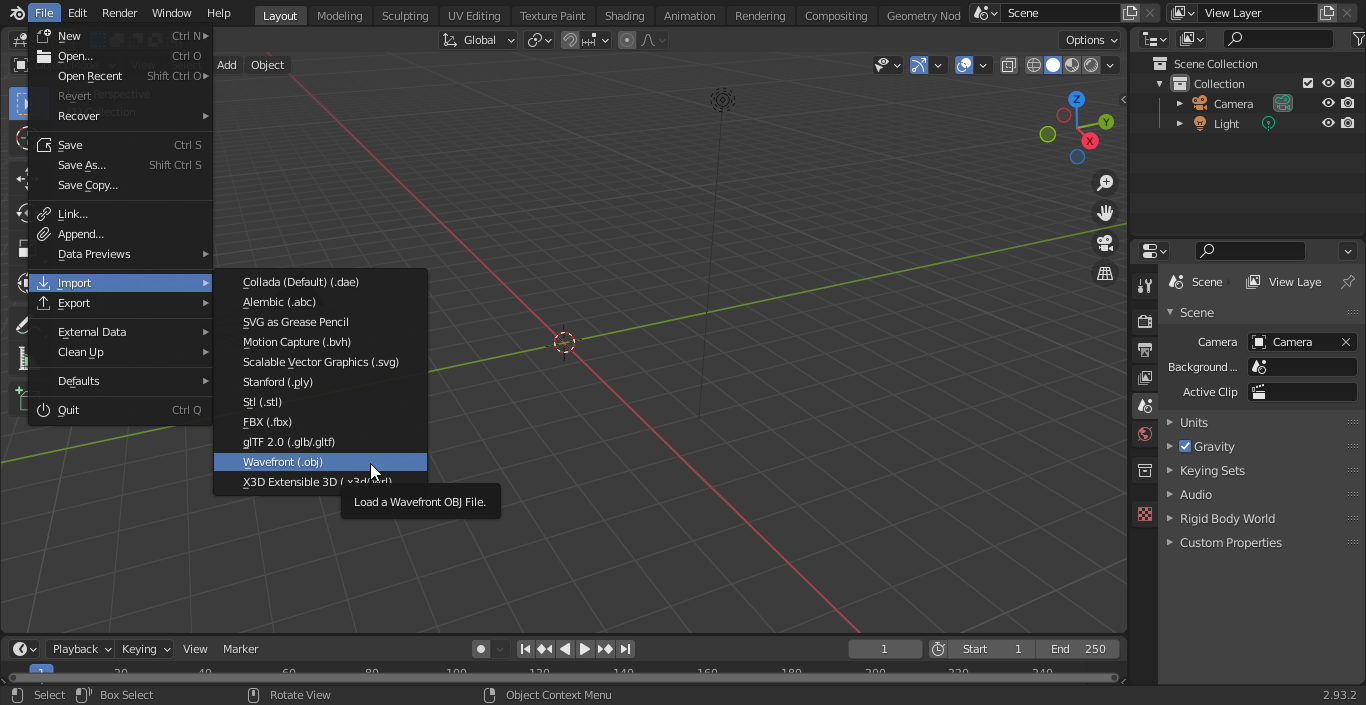 Next, fire up Blender, create a new General project, delete the default block and import the textured model Wavefront OBJ file: