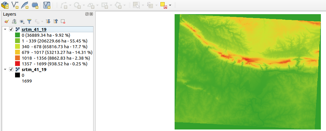 - Run the script and your raster is then loaded into QGIS.
