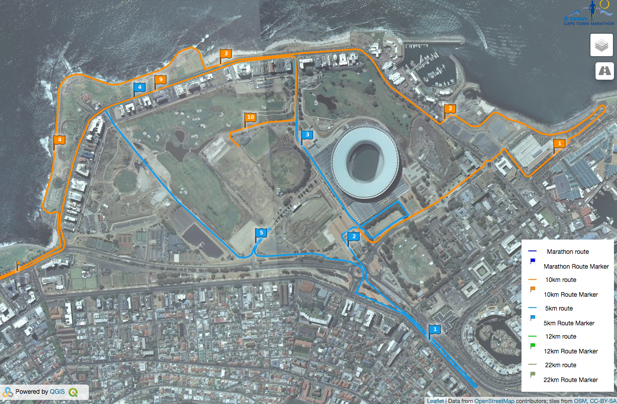 Cape Town Marathon: Kartoza supported the organisers of the Cape Town Marathon (and Cape Town Carnival) to do all their planning in QGIS and PostGIS. Read more about it on our blog articles.