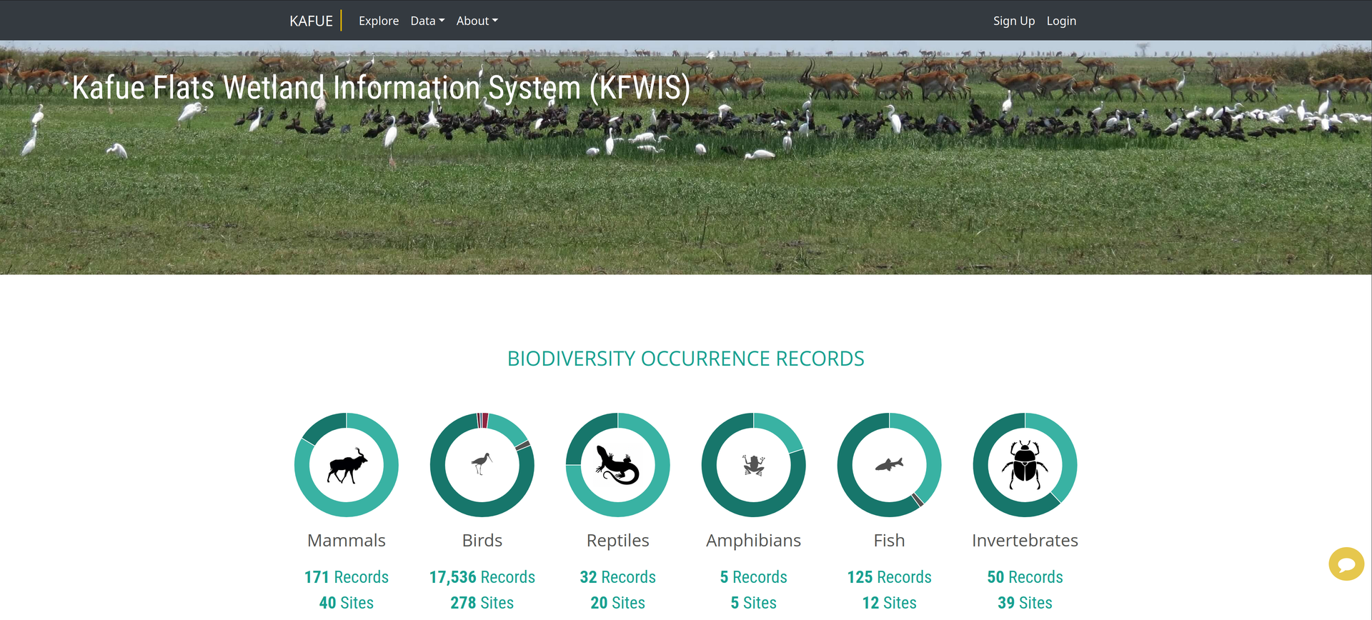 KFWIS is an instance of a BIMS (Biodiversity Information Management System)set up for tracking biodiversity in the Kafue Flats Wetlands, Zambia.